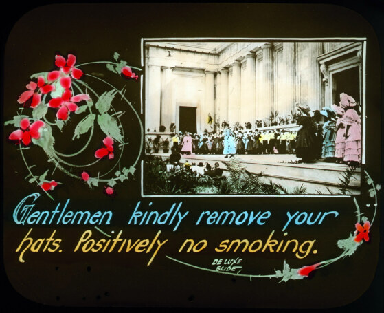 - Gentlemen kindly remove your hats. Positively no smoking.